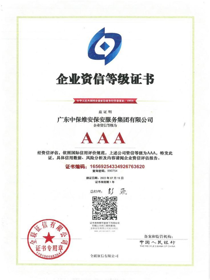 》 關(guān)于中保維安 》資質(zhì)榮譽(yù)