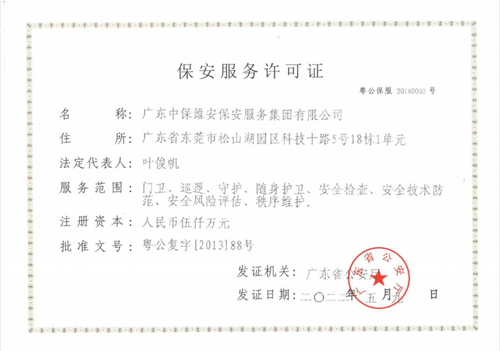 保安服務(wù)許可證